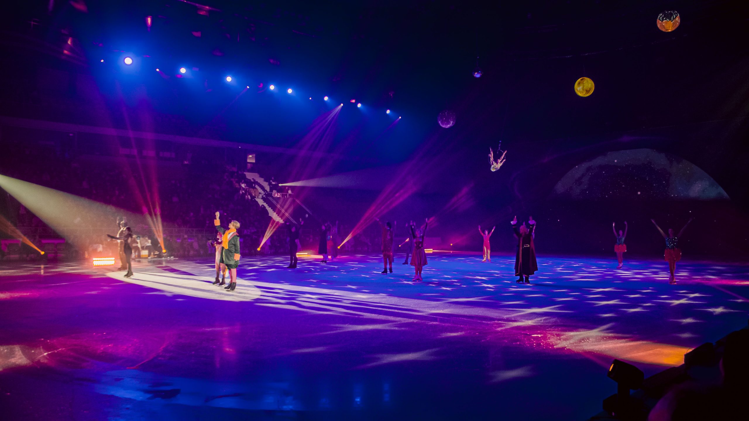 🔹 Décors lumineux en mouvement – étoiles, comètes et mondes imaginaires peuplent la scène dans un ballet de lumière et de poésie.