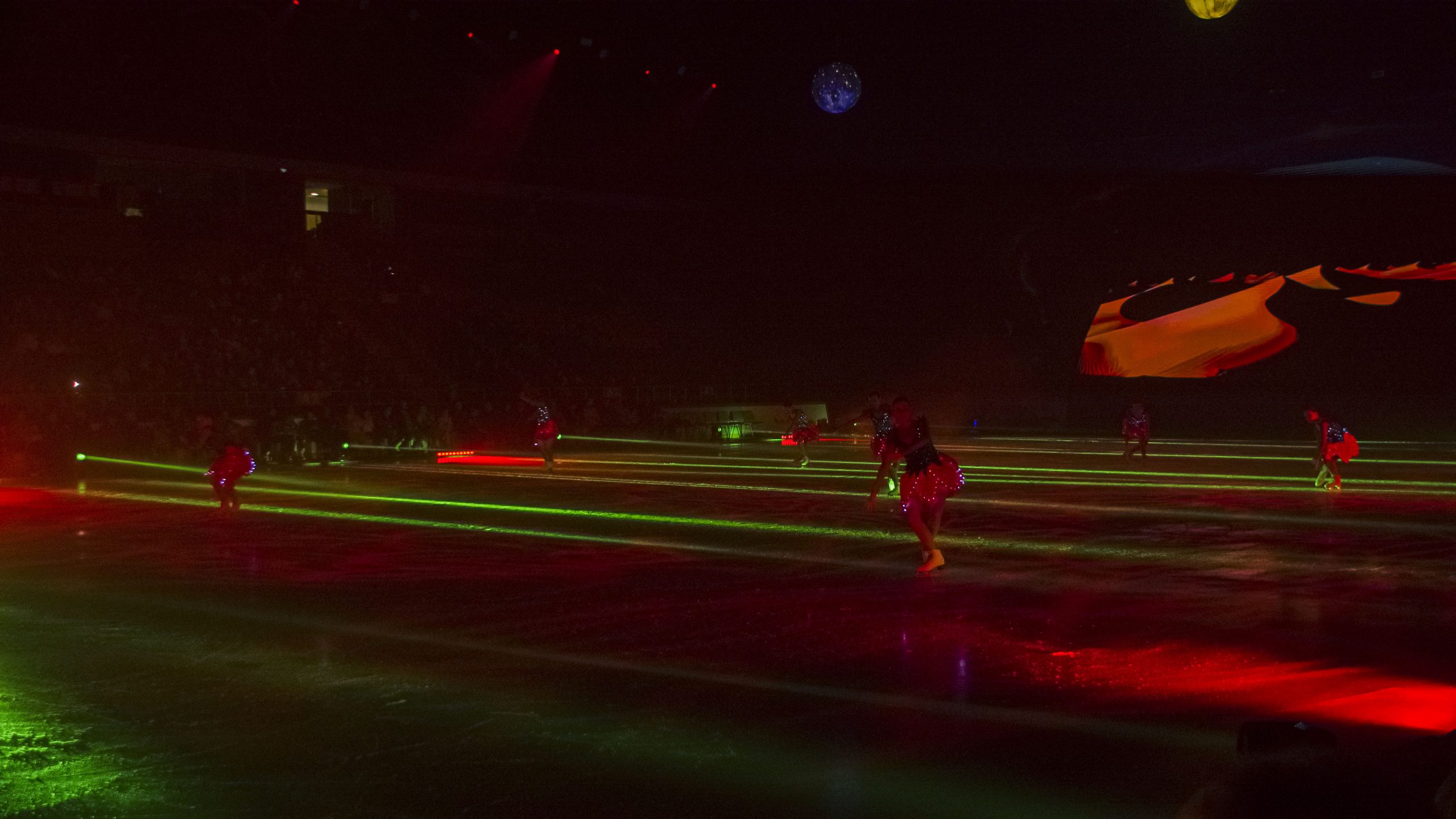 🔹 Projections immersives à 360° – la glace devient un écran vivant qui transporte le public dans l’espace, de planète en planète.